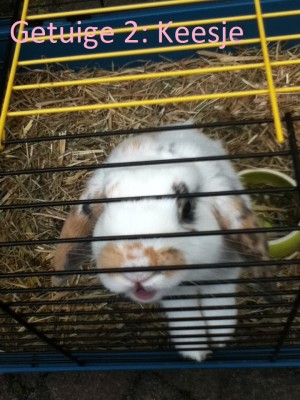 De volgende getuige is Keesje het konijn dat al jaren kampt met een probleem, zijn reuk is erg beperkt. Dit betekent dat hij wat moeite heeft met het vinden van eten. Als je het aan hem laat zien dan zit het eten aan de zijkant van zijn hoofd bij zijn ogen en dan heeft hij er alsnog niks aan. Hij heeft nog niet door dat hij zijn hoofd dan kan draaien om het eten te pakken. We kunnen dan ook niet te veel verwachten van hem. Dit reukgebrek kan een gevolg zijn van doorfokken, of was het Keesje ook overkomen als hij in alle vrijheid door de weide had kunnen hoppen. Is het beter om de natuur zijn gang te laten gaan of zijn dieren minstens zo gelukkig met een mens als hun baasje?