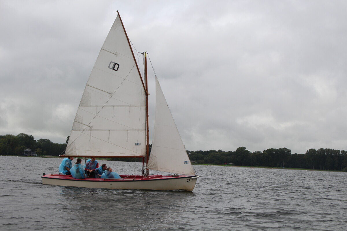 Bij aankomst was het droog weer, zoals voorspeld. Het bleef echter bij een voorspelling, want enkele minuten later kwam de regen met bakken uit de lucht. Door deze regen viel het eerste uur van de zeilsessie in het water en konden de aanwezigen zich vermaken met stressvolle spellen als ‘Halli Galli’ en ’30 Seconds’.