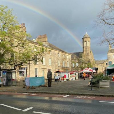 Hier is een deel van het marktplein in Lancaster te zien; er is altijd markt op zaterdag en woensdag. Het blijft Engeland met veel regen de laatste tijd, maar dat zorgt ook voor mooie momenten zoals dit.