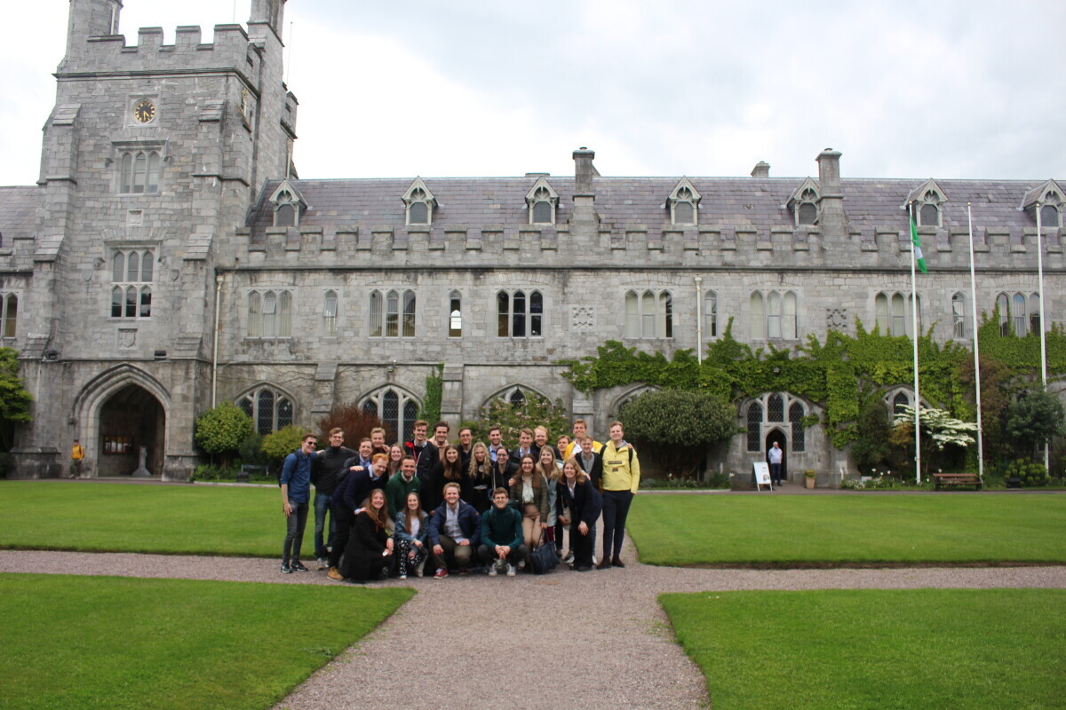 Zo hebben we de universiteit van het pittoreske Cork (met echte Harry Potter vibes) bezocht waar we een college van een Ierse professor kregen over de gevolgen van de Brexit op de Ierse economie. Ook hier waren weer enkele KF’s: zo bezochten we een kerkje waar mensen uit de hele wereld heen trokken om er te trouwen voor de prachtige glas-in-loodramen en wandelden we langs een brug, die speciaal ontworpen was om heen en weer te schudden als je erop sprong of rende. Dit moest natuurlijk uitgetest worden en al snel stond de hele groep op en neer te springen om dit met eigen ogen te zien. Na flink gelachen te hebben keerden we weer terug naar Galway.