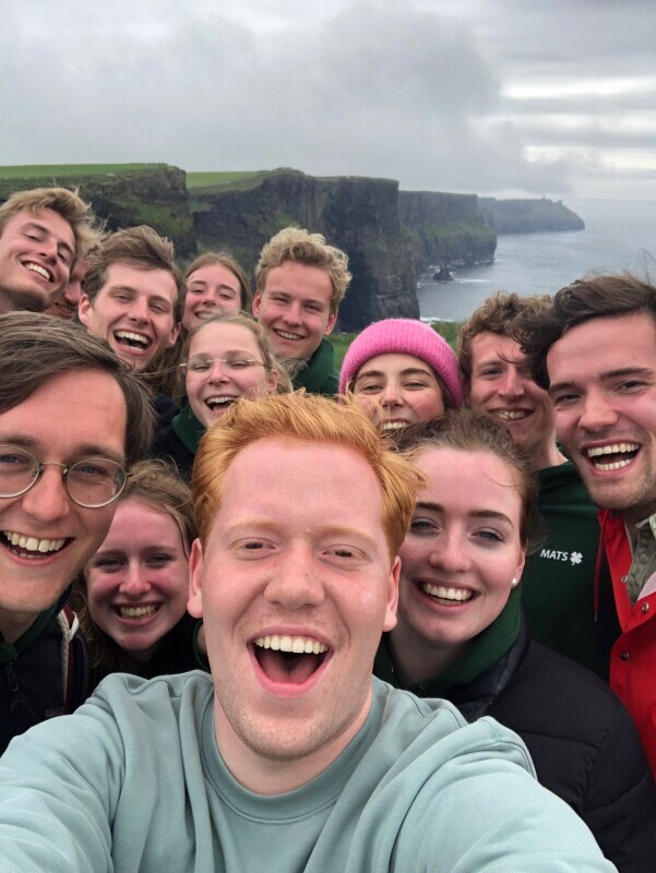 Nadat de hele groep reizigers, een mooie mix van ouderejaars en jongerejaars, ruim op tijd verzameld had op Schiphol, konden we eigenlijk vrij snel door de douane heen konden. Het schrikbeeld dat ons van tevoren voorgespiegeld was bleek best mee te vallen. Ten minste, dat dachten we.. Nadat onze vlucht telkens iets meer vertraging opliep, werd deze om half elf ‘s avonds uiteindelijk volledig gecanceld. Gelukkig bleef iedereen goed gehumeurd en vervolgens namen we Schiphol gewoon over met de draaikunsten van DJ Mats (grootste hit: “Always look at the bright side of life” van Monty Python). Verder hadden we het geluk dat iedereen die niet weer terug naar Rotterdam wilde gratis mocht overnachten in luxe Van der Valk hotel in de buurt van Schiphol! De volgende dag was het toch een stuk drukker en nog een heel gestress om de vlucht te halen, maar op 30 april was uiteindelijk toch iedereen in Ierland aangekomen.
