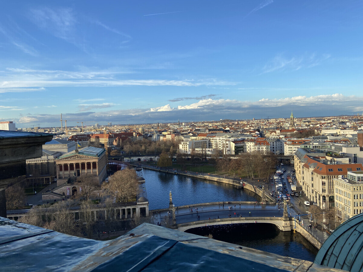 Vandaag begonnen we bij Checkpoint Charlie en het bijgelegen Mauermuseum. In dit museum waren veel ontsnappingspogingen gedocumenteerd, van mensen die van Oost- naar West-Berlijn probeerden te ontsnappen. Zo stonden er bijvoorbeeld auto’s met geheime compartimenten en zelfgemaakte duiksets, die toen verboden waren in verband met mogelijke ontsnappingen. ’s Middags gingen we naar de Berliner Dom, waar alle kerstversiering nog stond. Boven op de koepel hadden we prachtig uitzicht over de stad. Hierna gingen we door naar de East Side Gallery, waar het langste stuk Berlijnse Muur nog staat. We sloten de dag af bij Markthalle IX waar het streetfood Thursday was. Dat was erg gezellig en heel lekker.